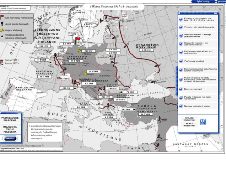 I WOJNA ŚWIATOWAODBUDOWA PAŃSTWA POLSKIEGORZECZPOSPOLITA W XX-LECIU MIĘDZYWOJENNYMEUROPA W XX-LECIU MIĘDZYWOJENNYMII WOJNA ŚWIATOWA 1939-1942II WOJNA ŚWIATOWA 1943-1945EUROPA W LATACH 1945-1990POLSKA PO 1945 ROKUPOLSKA W STREFIE SCHENGENŻYCIE I DZIEŁO PAPIEŻA JANA PAWŁA IIDZIEDZICTWO NARODOWE - 100 LAT HISTORII POLSKIDZIEDZICTWO NARODOWE - 1000 LAT KULTURY POLSKIEJGDZIE KUPIĆ ?Poniższe przykłady map przedstawiają porównanie pełnej oraz ćwiczeniowej mapy z włączonymi wszystkimi warstwamiPrzesunięcie suwaka pozwala na obejrzenie obu wersjiI WOJNA ŚWIATOWAI WOJNA ŚWIATOWA 1914-1916I WOJNA ŚWIATOWA 1917-1918REWOLUCJA PAŹDZIERNIKOWA I WOJNA DOMOWA W ROSJI ODBUDOWA PAŃSTWA POLSKIEGOODBUDOWA PAŃSTWA POLSKIEGO 1918-1922ZIEMIE POLSKIE PODCZAS I WOJNY ŚWIATOWEJ RZECZPOSPOLITA W XX-LECIU MIĘDZYWOJENNYMII RZECZPOSPOLITAGOSPODARKA II RZECZPOSPOLITEJLUDNOŚĆ II RZECZPOSPOLITEJ EUROPA W XX-LECIU MIĘDZYWOJENNYMEUROPA W XX-LECIU MIĘDZYWOJENNYMWIZJA RZESZY WIELKOGERMAŃSKIEJ I EUROPA W OKRESIE II WOJNY ŚWIATOWEJ II WOJNA ŚWIATOWA 1939-1942DZIAŁANIA WOJENNE W LATACH 1939-1942OBOZY ZAGŁADY W OKRESIE OKUPACJI HITLEROWSKIEJ I RUCH OPORUPLAN BARBAROSSAWOJNA NA PACYFIKU 1939-1942WOJNA NA BAŁKANACH 1940-1942WOJNA OBRONNA POLSKI II WOJNA ŚWIATOWA 1943-1945BAŁAKANY I FRONT WŁOSKI 1943-1945DZIAŁANIA WOJENNE 1943-1945DZIAŁANIA WOJENNE NA PACYFIKU 1943-1945II WOJNA ŚWIATOWA NA ATLANTYKU EUROPA W LATACH 1945-1990EUROPA W LATACH 1945-1989MIĘDZYNARODOWY TERRORYZMNATOPOWSTANIE PAŃSTWA IZRAELSTREFY OKUPACYJNE W NIEMCZECH I AUSTRII (1945)WOJNA W CHORWACJI ORAZ BOŚNI I HERCEGOWINIE 1992-1995 POLSKA PO 1945 ROKUPOLSKA. ZMIANY TERYTORIALNE I PRZEMIESZCZENIA LUDNOŚCI W PIERWSZYCH LATACH PO II WOJNIE ŚWIATOWEJPRL - PROTESTY SPOŁECZNE 1956-1989 POLSKA W STREFIE SCHENGENBUDŻET I WALUTAPODSTAWOWE DANE STATYSTYCZNE PAŃSTW CZŁONKOWSKICHPROCESY INTEGRACJI EUROPEJSKIEJ PO 1989PROCESY INTEGRACJI EUROPEJSKIEJ W LATACH 1945-1989STREFA SCHENGENSTRUKTURY UE ŻYCIE I DZIEŁO PAPIEŻA JANA PAWŁA IIPODRÓŻE JANA PAWŁA II DO POLSKIPODRÓŻE JANA PAWŁA II PO ŚWIECIE CZ.1PODRÓŻE JANA PAWŁA II PO ŚWIECIE CZ.2ŻYCIE I DZIEŁO PAPIEŻA JANA PAWŁA II DZIEDZICTWO NARODOWE - 1000 LAT HISTORII POLSKIDZIEJ POLSKI - WŁADCY I WYDARZENIA CZ.1DZIEJ POLSKI - WŁADCY I WYDARZENIA CZ.2 DZIEDZICTWO NARODOWE - 1000 LAT KULTURY POLSKIEJ1000 LAT KULTURY POLSKIEJ - CZ.11000 LAT KULTURY POLSKIEJ - CZ.2 CD1 - prehistoria, starożytność, średniowieczeCD2 - nowożytność oraz XIX wiekCD3 - historia najnowsza - XX wiekGdzie kupić ?